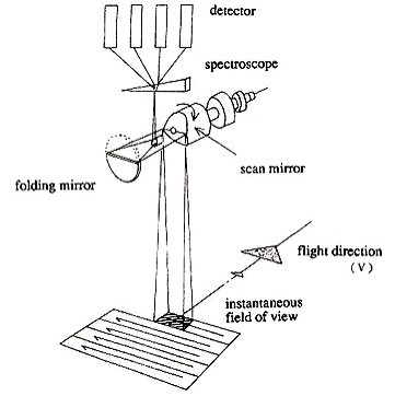 Doordat de satelliet zich in een baan om de planeet beweegt, lijkt het alsof het beeldveld over de planeet beweegt. Op die manier komt er telkens een ander stukje in beeld. Zo worden er grote stroken van de planeet gefotografeerd, die eigenlijk weer bestaan uit strookjes. In het ontvangststation worden al die lijnen aan elkaar gezet, zodat er een foto kan worden samengesteld. Stel je het zo voor: