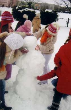 Žiemą stato sniego senius, žaidžia sniego gniūžtėmis / Make snowmen, play snowballs in winter