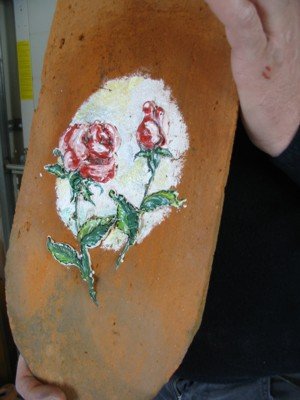 Slikali smo na strešno opeko (Anemarie Pohorec, 3. c) Na Zg. Velki se s to obrtjo ukvarja gospod Zvonko Galun, ki smo ga včeraj obiskali. Pokazal nam je, kako se riše na opeko in nas razveselil, da bomo risali tudi mi. Dobili smo barve, čopiče in vsak svoj košček opeke. Ko smo končali, je pregledal naše izdelke in nas pohvalil. Še sam je naslikal vrtnico, jo pobarval ter jo na koncu podaril učiteljici. Vsi smo bili navdušeni in smo se veliko novega naučili. ![]() ![]() |